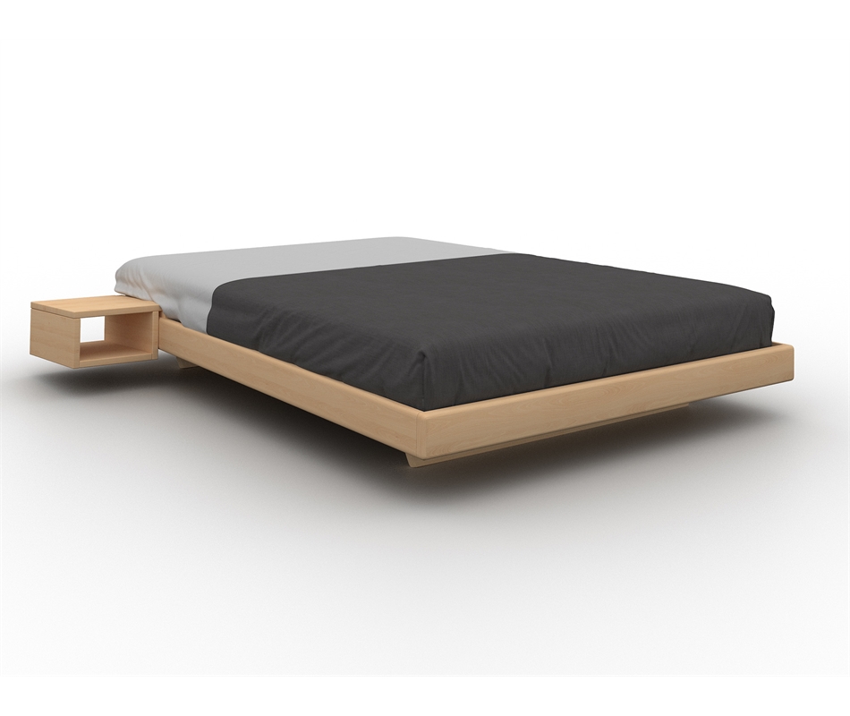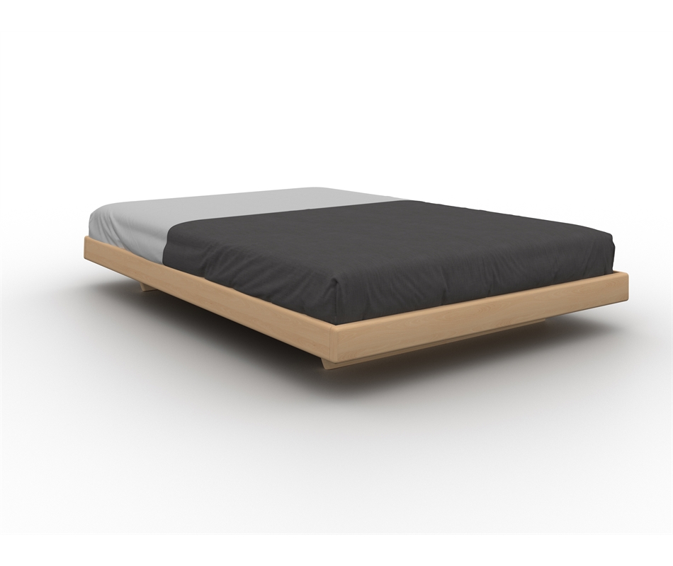 Il letto in legno di faggio Aria, disponibile nelle misure da 140x200 a 200x200 cm.