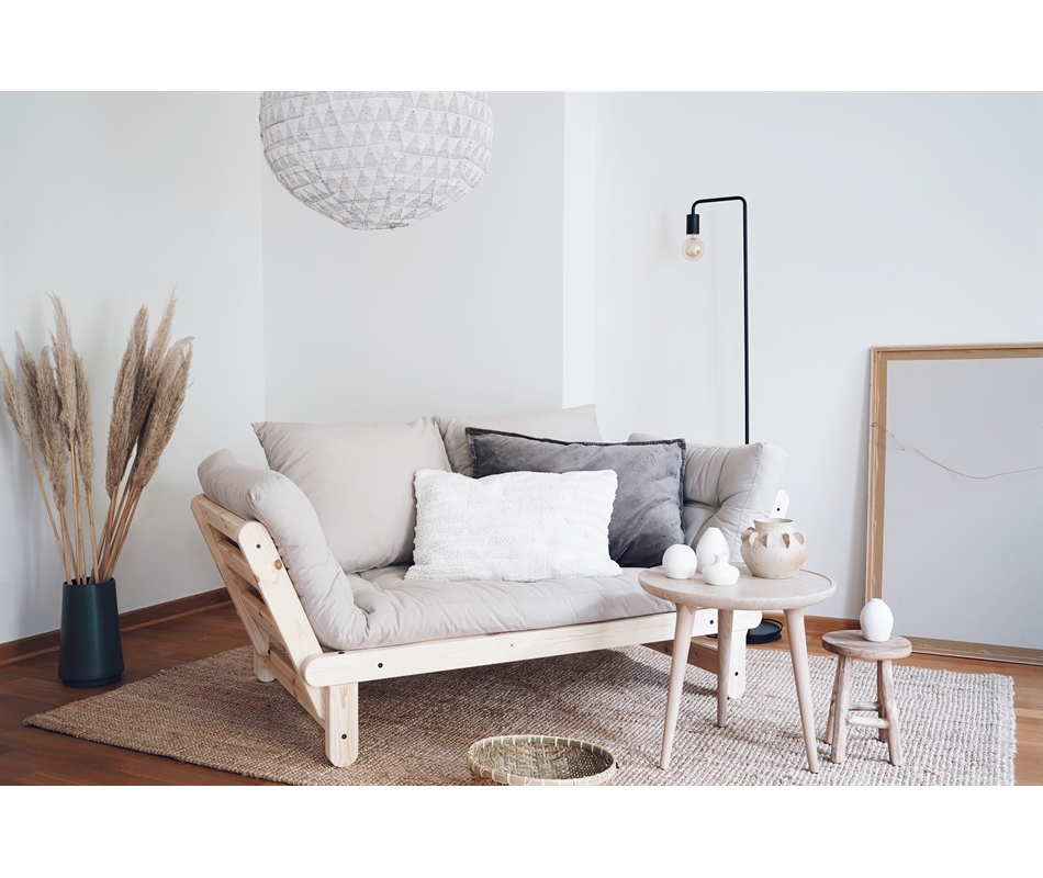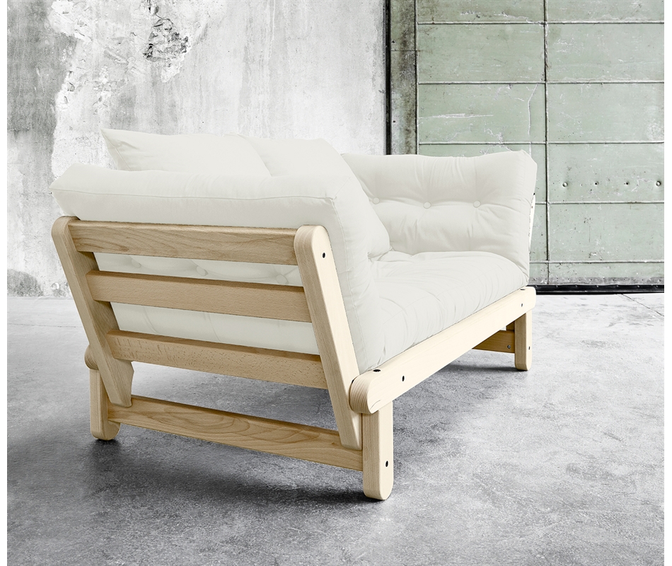 Il divano letto Beat in massello di pino scandinavo può trasformarsi, grazie ai braccioli laterali obliqui, in chaise longue o in letto a posto singolo. Divano BIO. Verniciato con un rivestimento laccato all'acqua , disponibile in vari colori. Struttura in legno prodotta da Karup, futon e cuscini Viverezen realizzati in Italia. Il divano è comprensivo di futon 75x200x10 cm in polycotton e cuscini in cotone grandi 40x60 cm. Misure Aperto: cm. 80 x 200 Chiuso: cm. 80 x 162 Altezza struttura...