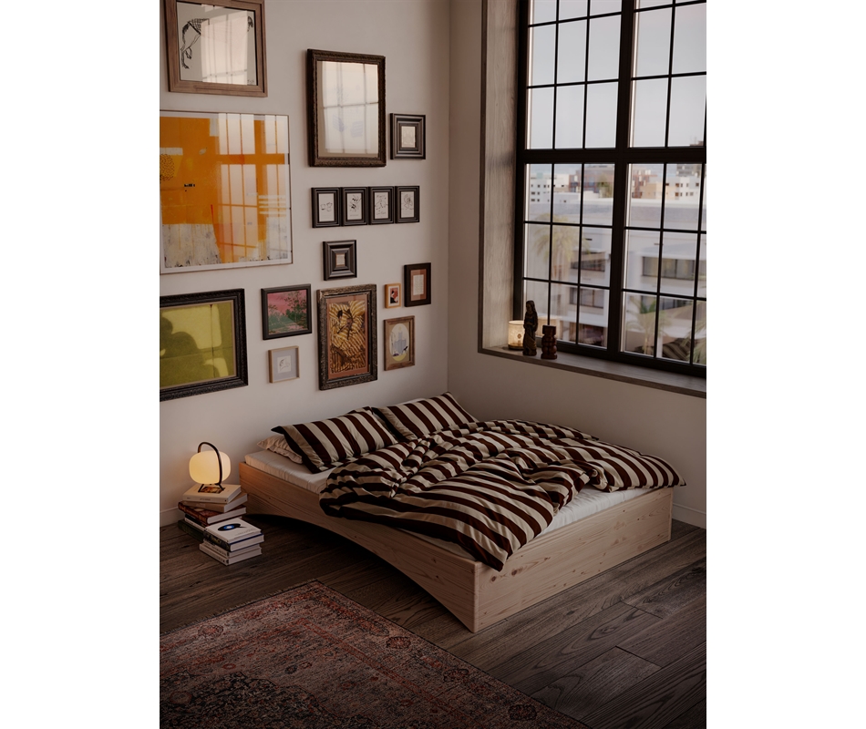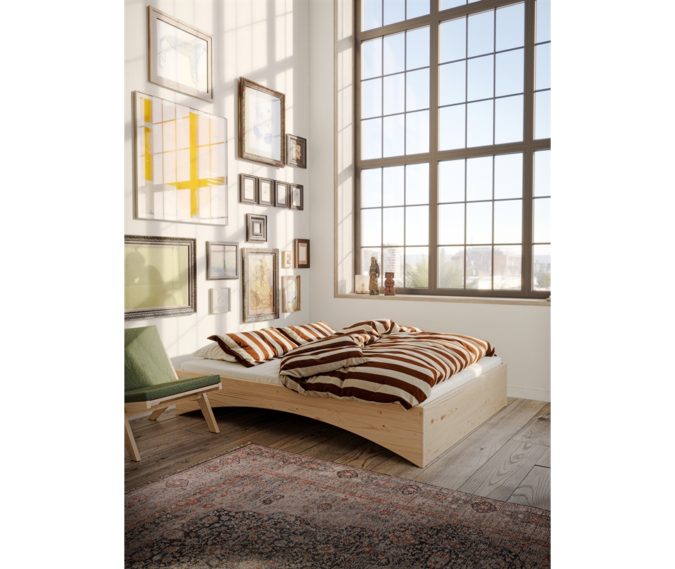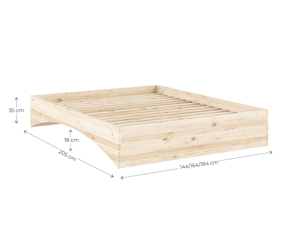 Il letto Orbit è disponibile in varie dimensioni, da cm 140x200 a cm 180x200, realizzato in pino scandinavo massiccio La sua struttura unisce la semplicità delle linee geometriche alla leggerezza della curva arcuata ai due laterali del letto. Si caratterizza per la struttura solida e gli angoli arrotondati. Colore Non Verniciato Le doghe sono incluse. Il futon non è incluso. L'altezza complessiva del letto è di 35 cm, e lo spazio sotto il letto è 18 cm nella parte più alta della curva...